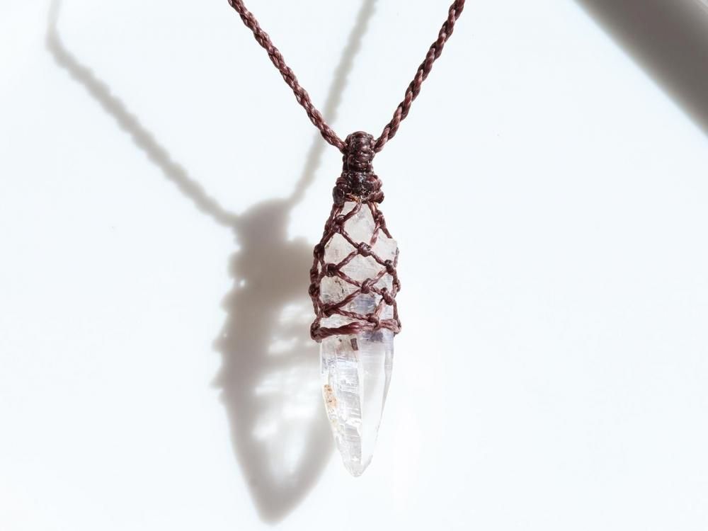 【Q519】水晶 / 人生がきらめく!聖地ヒマラヤ水晶のマクラメ編みペンダント約7g